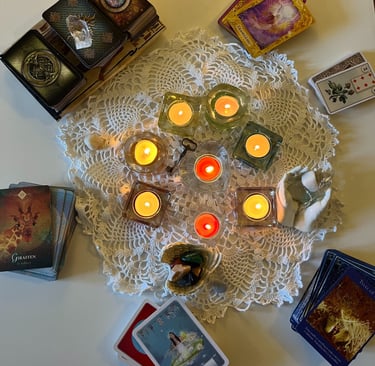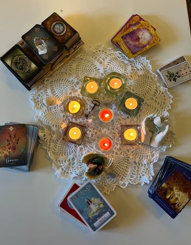 Intuitiv och Medial Vägledning Jag använder olika typer av kort, såsom tarotkort, orakelkort, änglakort och lenormand, för att få insikt och vägledning som är specifika för din situation. Läs mer